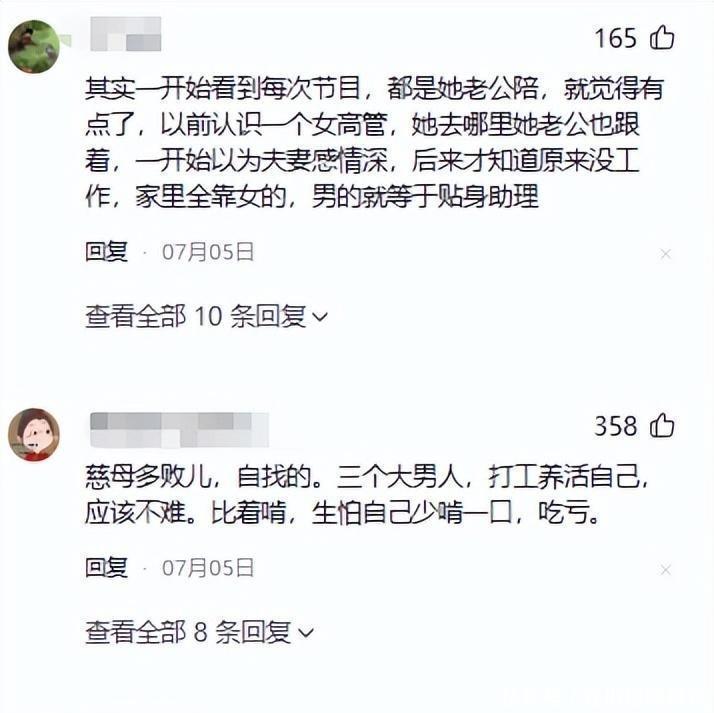网友们看完这段采访,纷纷打趣说赵女士的儿子“前半生靠妈妈养着,后半生靠老婆养着,这是要躺平过一辈子啊”。要是只有一个儿子不成器那也算了,可她偏偏有三个这样的儿子,而且这三个儿子还给她添了一大堆孙子孙女。