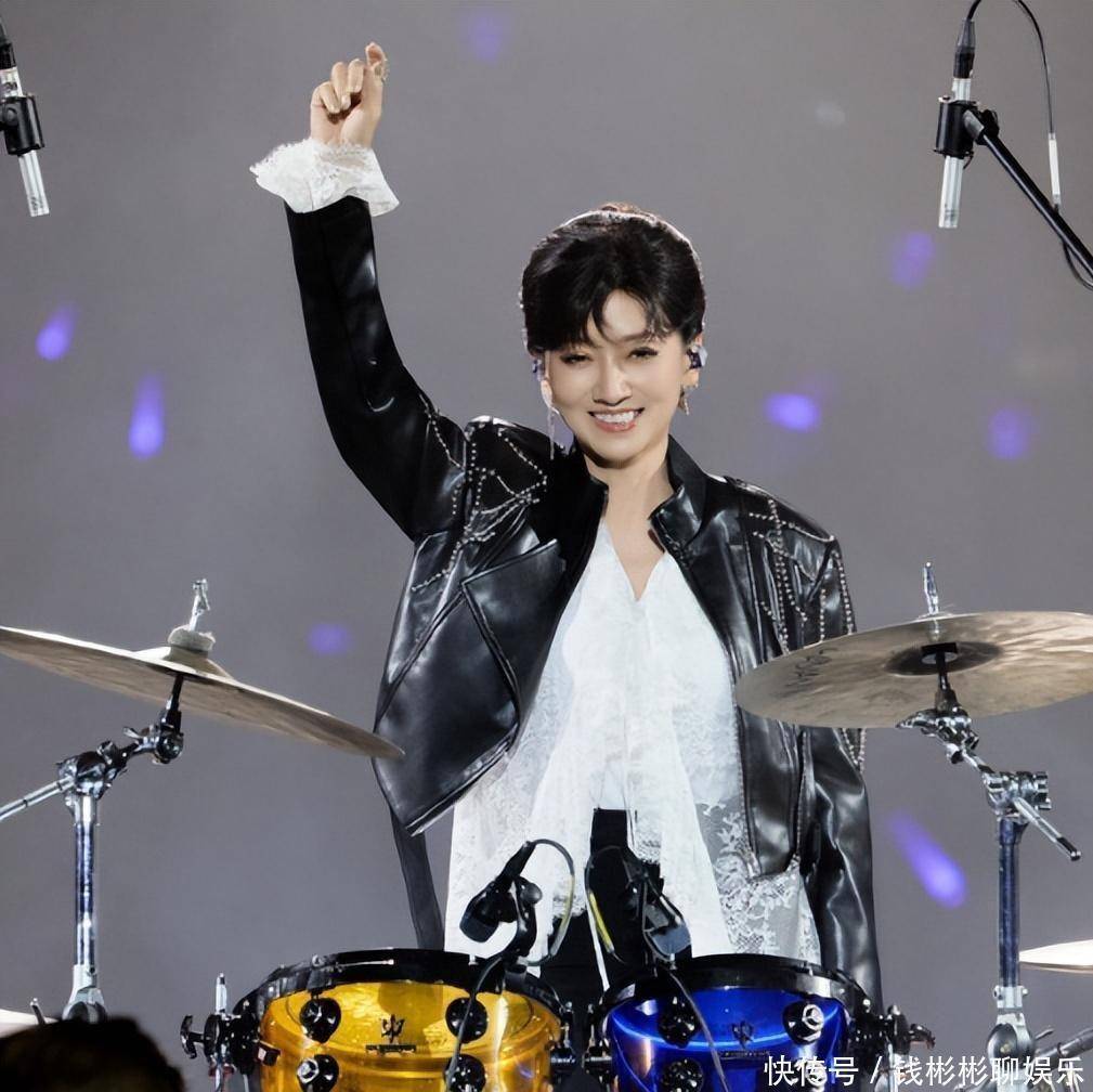她不仅这样,还让粉丝们看到了她新练的本事,敲架子鼓和跳扫腿舞,真是让人意想不到。她身着黑色皮衣,端坐在架子鼓前,帅气地击打鼓面,节奏感十足,和专业鼓手相比毫不逊色。